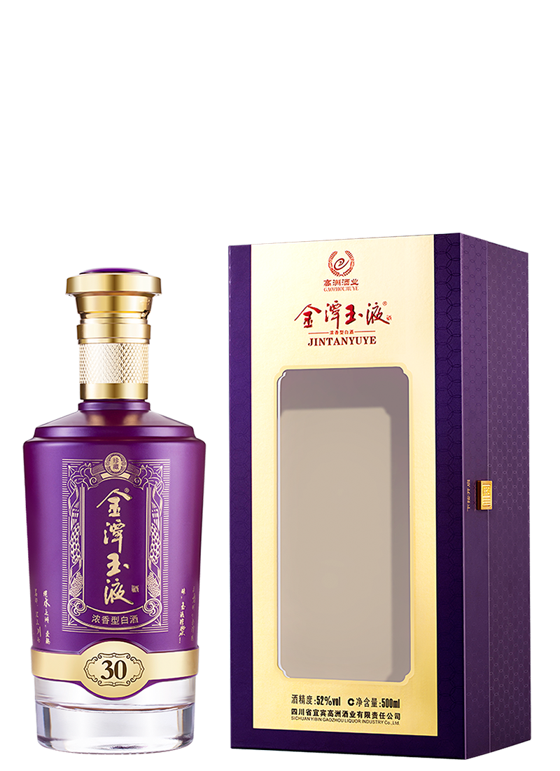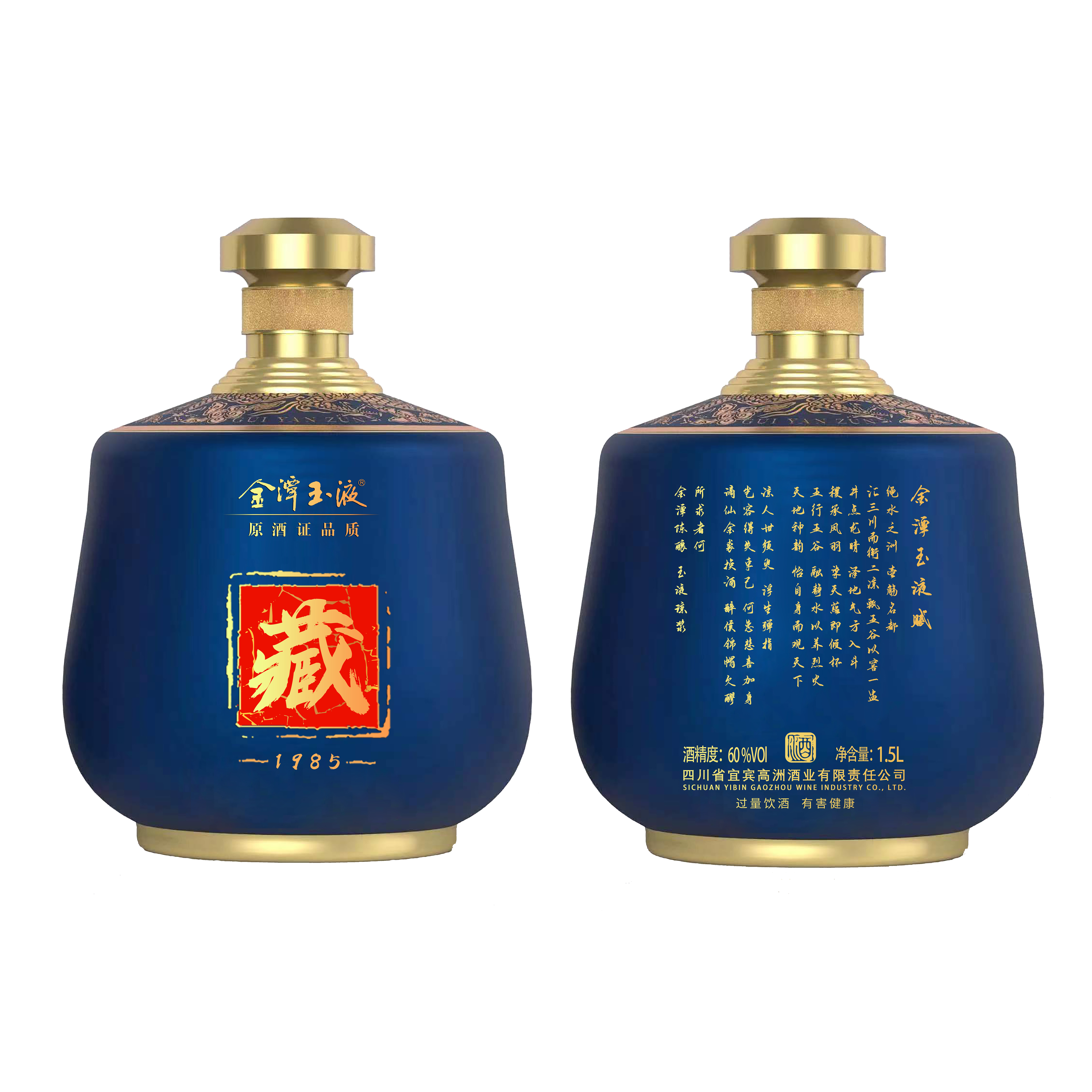 酒體:清亮透明,復合香優雅,酒體醇厚,爽凈綿長,多糧濃香風格典型。 外觀:瓶身整體深藍色沉穩,正面浮雕印藏字更顯尊貴,瓶身后印有金潭玉液賦,彰顯品牌文化,具有收藏價值。 適用場景:禮盒三斤大壇裝,適用于送禮收藏。高度濃香酒,可直接飲用,作為調味酒更佳。